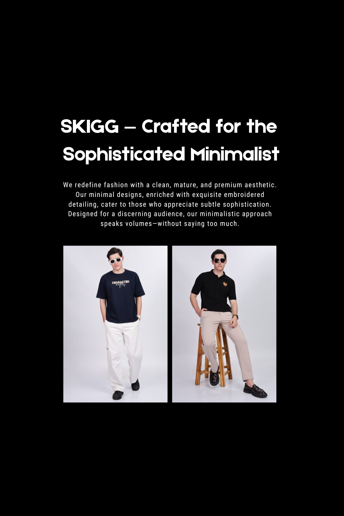 Skigg Black Polo Half Sleeve T-Shirt β Embroidered Design | Premium Cotton Blend