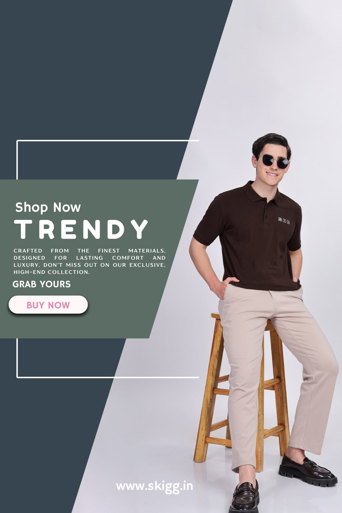 Skigg Coffee Brown Polo Half Sleeve T-Shirt β Embroidered Design | Premium Cotton Blend